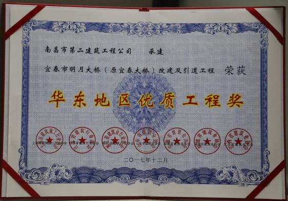 新年伊始,公司項(xiàng)目就迎來(lái)了開門紅。公司承建的宜春市明月大橋改建及引道工程榮獲華東地區(qū)優(yōu)質(zhì)工程獎(jiǎng)。