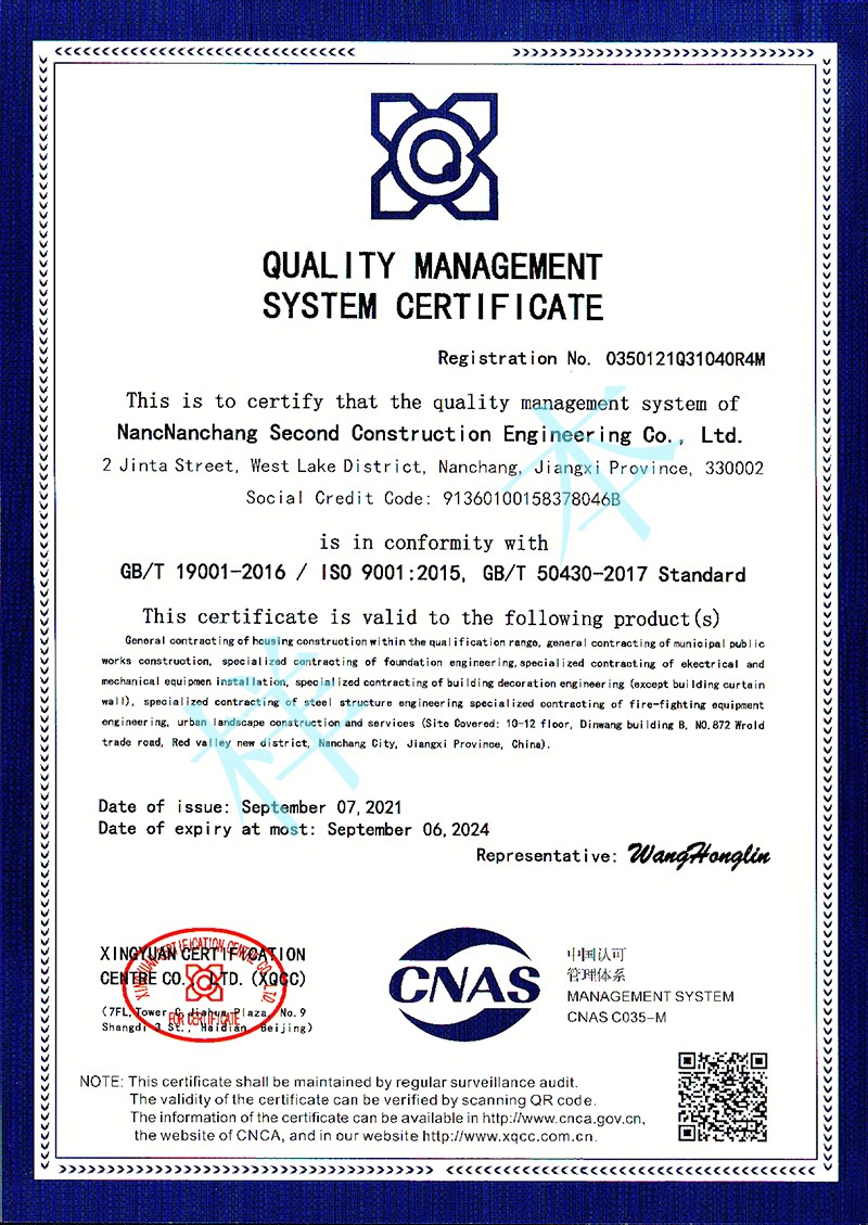 質(zhì)量管理體系認證證書